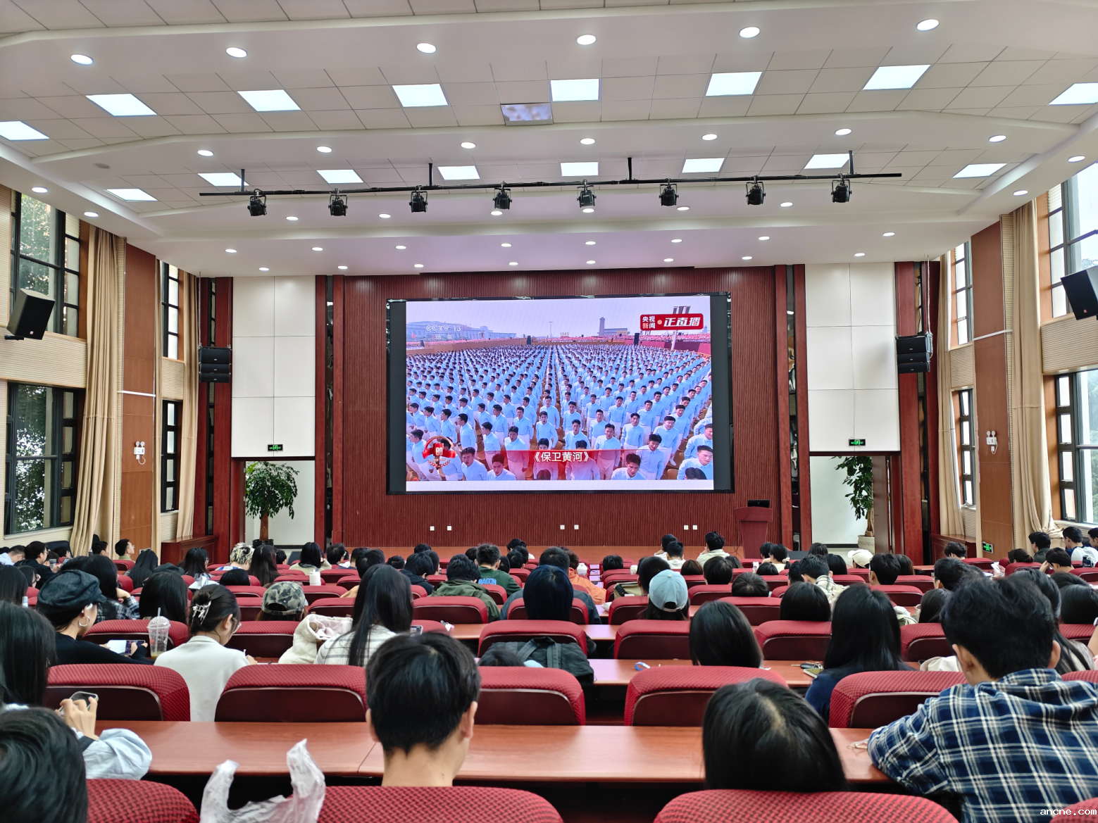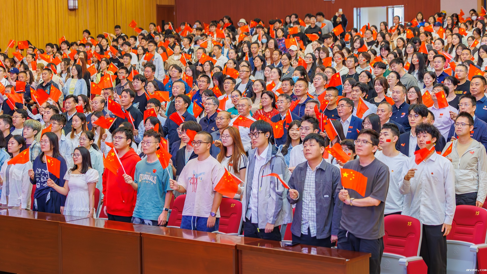 在学生会堂集中收看点,当大会尾声,直播画面中万千羽象征和平与希望的白鸽振翅高飞,师生们全体起立,激动地挥动着手中鲜艳的国旗,表达着对祖国的热爱、对历史的铭记、对先烈的缅怀、对和平的珍爱、对开创未来的信心和决心。