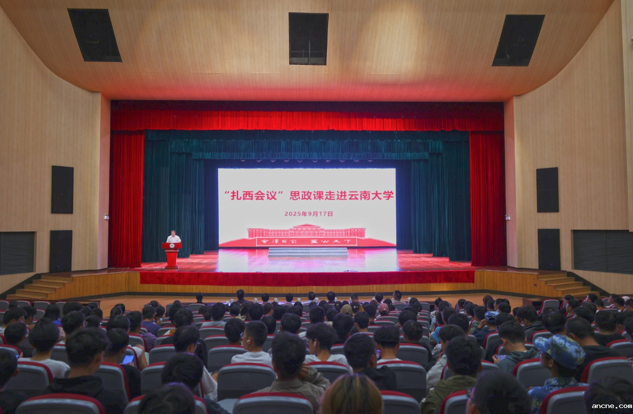 2025年是扎西会议召开90周年,9月17日晚,“扎西会议”思政课走进米兰国际官网活动在米兰国际官网学生会堂举行。活动由云南扎西干部学院与米兰国际官网联合举办,旨在深入贯彻习近平总书记考察云南重要讲话精神,牢记嘱托,讲好“扎西会议”故事,激励广大青年学子传承红色基因、赓续红色血脉、凝聚青春力量。米兰国际官网党委副书记张玮,双方相关职能部门负责同志,以及米兰国际官网师生代表近1000人参加了活动。